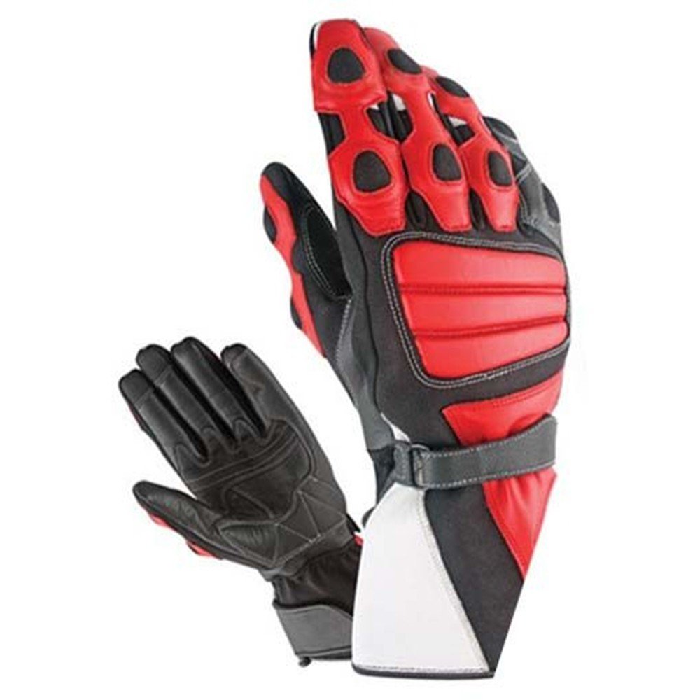 Leather Motorbike Gloves Made Of Cow Hide Leather With Secondary Leather Inserts And Padding Used Through Out The Top and Palm of the Glove. Carbon Fiber Covers the Knuckles, External Seams Used On the Fingers And A Unique Stage Velcro Wrist Ensure Comfort And Safety.